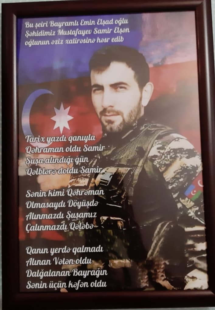 Mən atamdan xahiş etdim ki, məni şəhidimizin doğulub boya-başa çatdığı evə aparsın, min bir əziyyətlə oğul böyüdən ailəni tanıyım. Sağ olsun atam mənim istəyimi həyata keçirdi. Biz Samir Mustafayev haqqında yazdığım şeirimi çərçivələtdirərək şəhid ailəsinin ziyarətinə getdik. Bizi qapıda qarşılayan şəhidimizin atası oğlu ilə qürur duyduğunu bildirdi. Daha sonra şəhidimizin ailə üzvləri ilə həmsöhbət oldum.