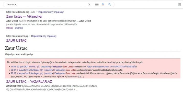 Zaman-zaman belə hallarla rastlaşsaq da bu hadisənin qeyri-adiliyi ondadır ki, bu dəfə Vikipediyanın Azərbaycan seqmentində baş verib. Beləki, tanınmış şair Zaur Ustac haqqında Azərbaycan dilində olan məqalə silinib.