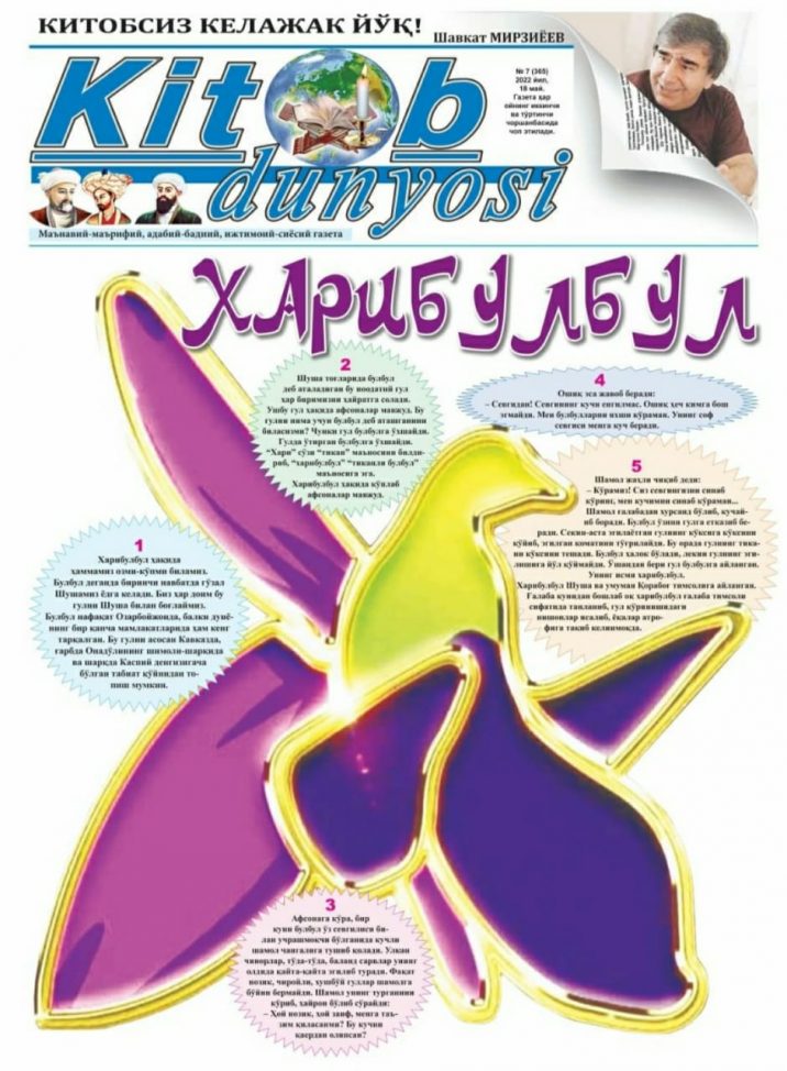 Müstəqil.az xəbər verir ki, qardaş Özbəkistanın nüfuzlu “Kitab dünyası” qəzetinin son sayının ana səhifəsi Xarıbülbülə həsr olunub.