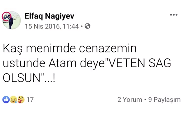 Elfaq 2016-cı ildə feysbuk hesabında paylaşım edərək “Kaş mənim də cənazəmin üstündə atam deyə Vətən sağ olsun…” sözlərini yazıb. Nə qədər kədərli olsa da, onun bu arzusunu atası 4 il sonra məzarı başında yerinə yetirib. Azad dayı hönkürə-hönkürə “Vətən sağ olsun!” deyib.