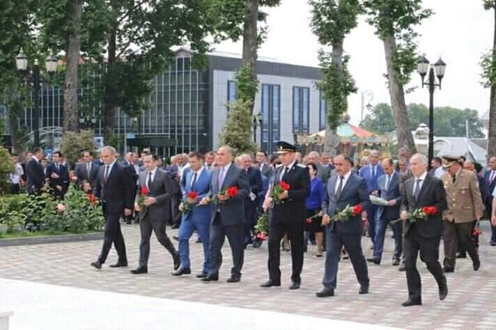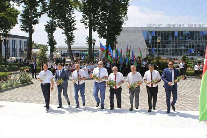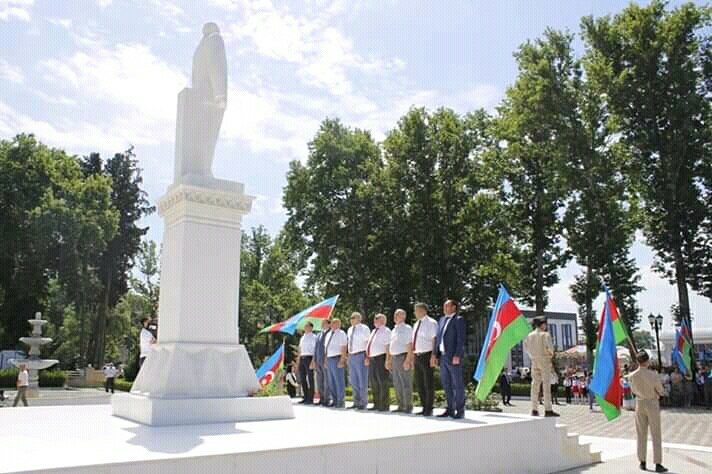 Ümumrayon təbdirində iştirak edən rayon rəhbərliyi və rayon ictimaiyyətinin nümayəndələri əvvəlcə ulu öndər Heydər Əliyevin abidəsini ziyarət edərək önünə gül dəstələri düzüblər.