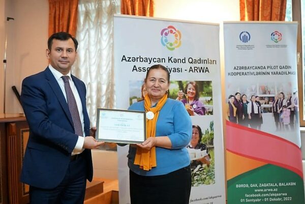 “Azərbaycanda Pilot Qadın Kooperativlərinin Yaradılması” layihəsinin sonunda- noyabrın 29-da Bərdə şəhərindəki Heydər Əliyev Mərkəzində qadın kooperativləri cəmiyyətə təqdim olundu. Sərgidə və tədbirdə Ağdam, Beyləqan, Bərdə, Qax, Zaqatala, Tərtər və Balakən rayonlarından 26 Qadın Qrupu iştirak edirdi. “Kənd Təsərrüfatı Nazirliyinin Fermerlər, Kooperativlər və Assosiasiyalar şöbəsinin müdiri Fariz Əliyev pilot kooperativlərin sədrlərinə “Kooperativ Quruculuğu” təlumində iştirakla bağlı sertifikat təqdim etdi.”USAİD Özəl Sektorun İnkişafı Layihəsinin siyasət və hüquq eksperti Rəşid Məmmədov kooperativ kimi fəaliyyət göstərəcək qadın qruplarının USAİD/PSA Layihəsi ilə uğurlu əməkdaşlığından və gələcək perspektivlərdən söz açdı.