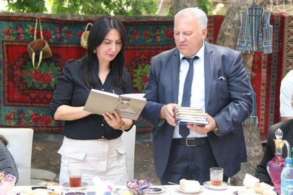 Məhəmməd Həsənov kitabxanaya Firidun Şuşinskinin kitablarını təqdim edib və xatirə şəkli çəkdirilib.