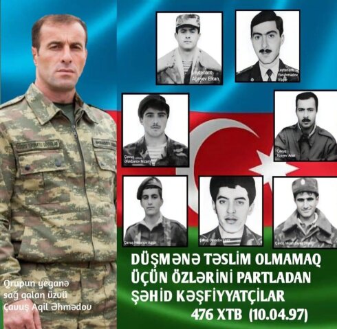 1997-ci il aprel ayının 7də 8 nəfərdən ibarət X\T dəstənin kəşfiyyatçıları dövlət əhəmiyyətli tapşırığı yerinə yetirmək üçün Xocavənd rayonu istiqamətində düşmən arxasına keçir. Kəşfiyyatçı qrup döyüş tapşırığını uğurla yerinə yetirıb geri qayıdarkən düşmən mühasirəsiylə üz-üzə qalır. 3 gün qeyri-bərabər döyüşdə igid kəşfiyyatçılarımız qarşı tərəfin xeyli silah sursatlarını ,texnikalarını məhv etmiş və əsir düşməmək üçn son qumbaraları ilə özlərini partladaraq şəhid olmuşlar. Düşmən gülləsindən ölümcül yaralanan Aqil Əhmədov meşədə huşsuz vəziyyətdə əsir götürülür. 1 il 11 aylıq məşəqqətli əsir həyatından sonra Qırmızı Xaç cəmiyyətinin xəttiylə vətənə dönür. Yeddi şəhid ölümlərindən sonra Azərbaycan Bayrağı ordeni ilə təltif olunur. Yeddi igid kəşfiyyatşımız 28 ildir ki yan-yana 2-ci Fəxri Xiyabanda uyuyur. Bu yerdə 8 igid kəşfiyyatçılarımızın adlarını qürurla çəkmək istərdi.