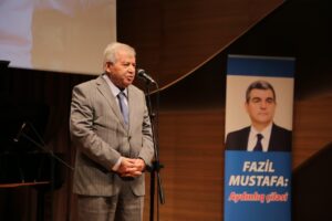 Sonda Fazil Mustafa kitablarını oxucular üçün imzalayıb.
