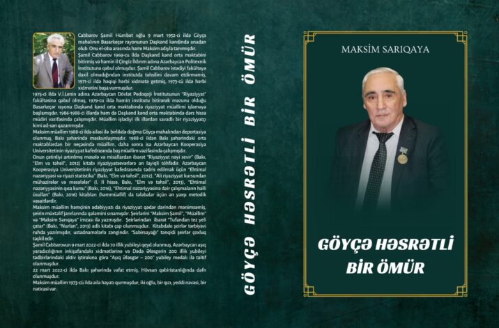 Azərbaycan Kooperasiya Universitetinin riyaziyyat kafedrasının baş müəllimi olmuş Göyçəli şair Maksim Sarıqayanın “Göyçə həsrətli bir ömür” adlı 760 səhifəlik kitabı bu günlərdə “Elm və təhsil” nəşriyyatında nəfis şəkildə çap olunub.