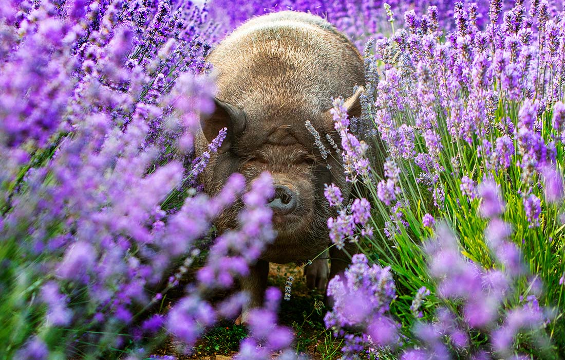 Böyük Britaniyanın Suonsi şəhərində lavanda tarlasında donuz
