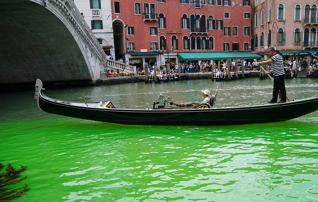 Venesiyada Böyük Kanalda fosforlu yaşıl ləkə görünür.