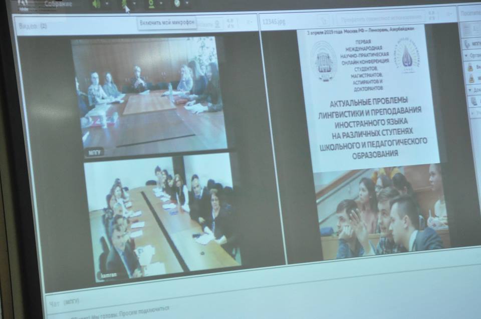 Lənkəran Dövlət Universitetində (LDU) Moskva Pedaqoji Dövlət Universitetin Xarici Dillər İnstitutu ilə birgə “Məktəb və pedaqoji təhsilin ayrı – ayrı mərhələrində linqvistikanın və xarici dilin tədrisinin aktual problemləri” mövsunda I Beynəlxalq Onlayn Konfrans keçirilib.Konfransda hər iki ali təhsil müəssisəsinin tələbələri, magistrantları, aspirant və doktorantları iştirak edib.