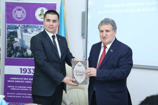AMEA rəhbəri çıxışının sonunda Məhtimqulu Fəraqinin 300 illik yubileyinə töhfə olaraq böyük mütəfəkkirin zəngin ədəbi irsi ilə bağlı ortaq kitabın nəşr olunması təklifini irəli sürüb. Məhtimqulu Fəraqinin “Divan”ını qonaqlara hədiyyə edib.