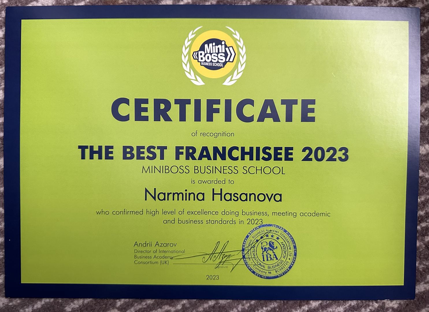Bundan başqa, dünyada 73 filialı olan “Miniboss Business School”un Azərbaycanda təsisçisi Nərminə Həsənova 2023-cü ilin ən yaxşı franşıza sahibi adına layiq görülüb.