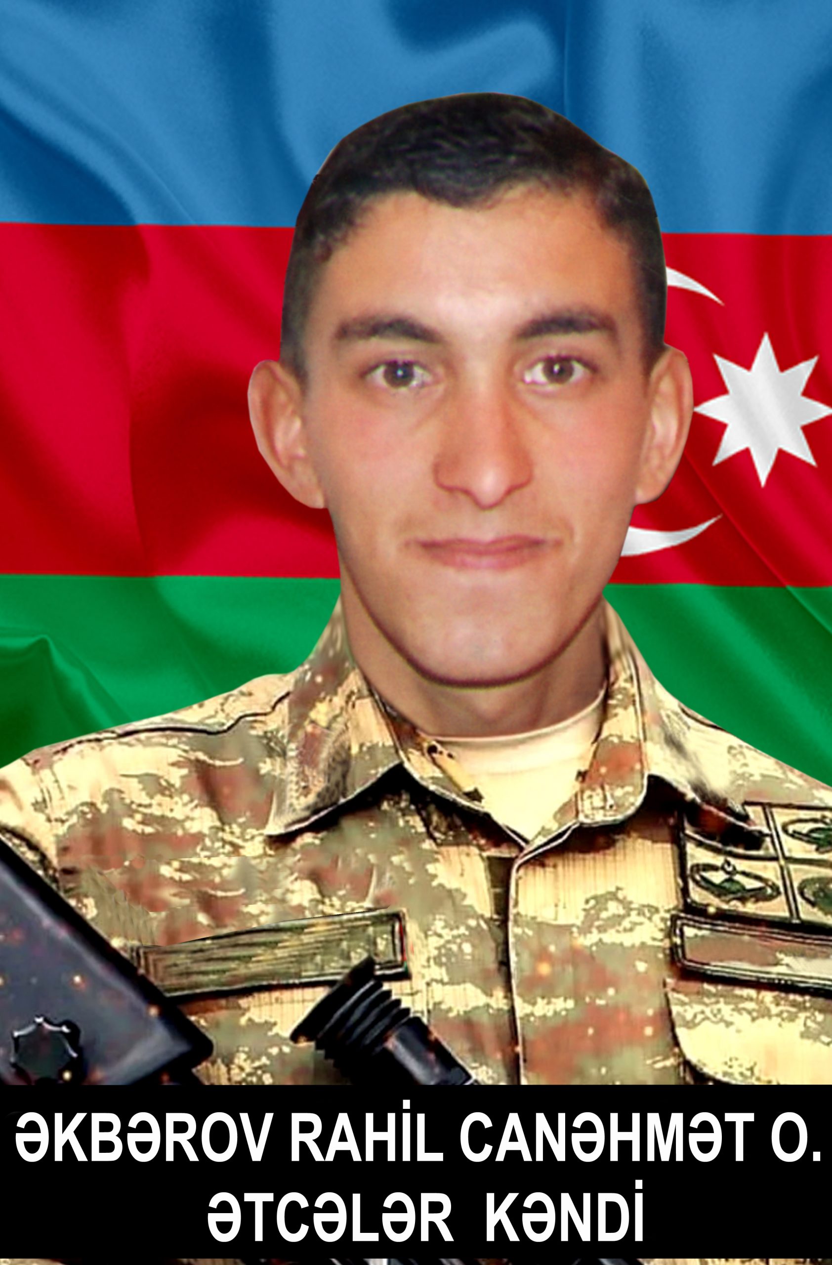 Əkbərov Rahil Canəhməd oğlu müharibənin başlandığı gündən sonuna qədər davada olan, gülşən Qarabağın yağılardan azad edilməsində xüsusi cəsarət və igidlik göstərən oğullardandır. O,1 mart 1991-ci ildə Ətcələr kəndində dünyaya gəlmiş, 1998-2009-cu illərdə Ətcələr kənd tam orta məktəbində təhsil almış, məktəbi bitirdiyi ilin yaz çağırışında da hərbi xidmətə getmişdi. Tovuz rayonunun Əlibəyli kəndində yerləşən “N” saylı hərbi hissədə Azərbaycan Silahlı Qüvvələrinin Quru Qoşunlarının əsgəri kimi vəzifəsini yerinə yetirərək 2011-ci ildə geri dönmüşdü. Gələndən sonra müxtəlif işlərdə çalışan Rahil 2015-ci ildə sevdiyi Sveta xanımla ailə həyatı quraraq həyat yollarını birləşdirmişdi.
