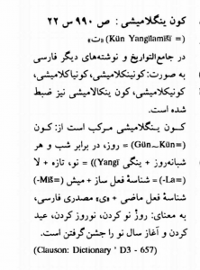 Kün = Gün Yengilamişi” bir neçə hissədən ibarədir: kun = gün:; Yengi = yeni, təzə; La = fel şəkilcisi; Miş = keçmiş zaman şəkilcisi.
