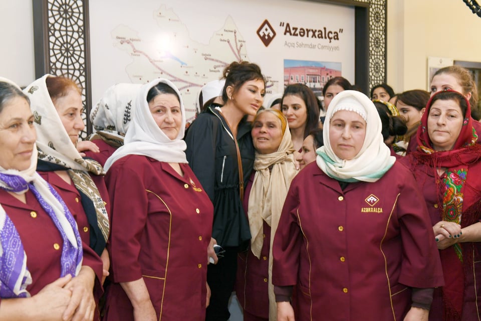 Müəssisə ilə tanışlıqdan sonra Prezident İlham Əliyev və birinci xanım Mehriban Əliyeva xalçaçılarla görüşdülər.