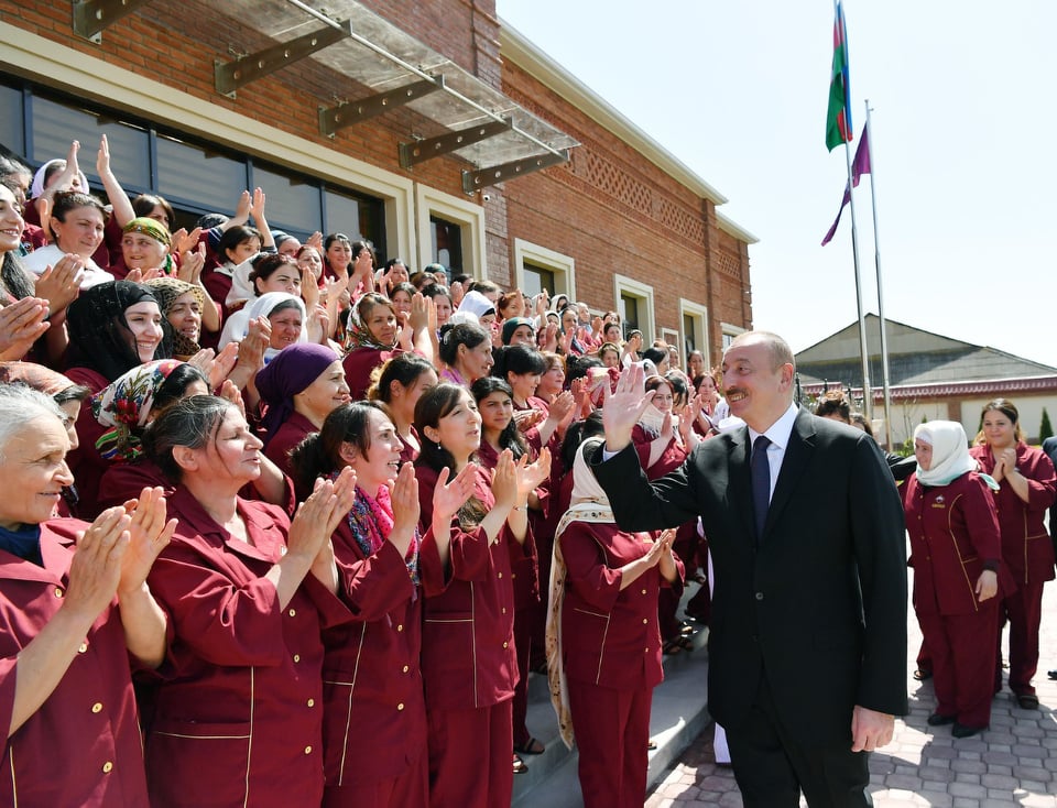 – İlk növbədə, sizi peşə bayramınız münasibətilə təbrik edirəm. Çox şadam ki, bu peşə bayramı günlərində gözəl fabrikin açılışını qeyd edirik. “Azərxalça” Açıq Səhmdar Cəmiyyəti üç il bundan əvvəl mənim Sərəncamımla yaradılmışdır. Qarşıya vəzifə qoyulmuşdur ki, ölkəmizin bütün bölgələrində müasir xalça fabrikləri yaradılsın və bu istiqamətdə çox böyük işlər görülüb. Artıq 20 fabrik hazırdır. Ümumiyyətlə, 31 xalça fabrikinin yaradılması nəzərdə tutulur. Hesab edirəm ki, növbəti bir-iki il ərzində qalan fabriklər də istifadəyə veriləcək və beləliklə, Azərbaycan öz qədim sənətini yaşatmaq istiqamətində çox önəmli addım atmış olacaq.