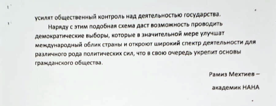 Xüsusi qeyd etmək yerinə düşər ki, belə bir planı həyata keçirmək nə Ramiz Mehdiyevin, nə də onun əlaqə qurduğu dairələrin imkanında deyil. Sadəcə, buna cəhd etmək onun əsl riyakar xislətini nümayiş etdirir.