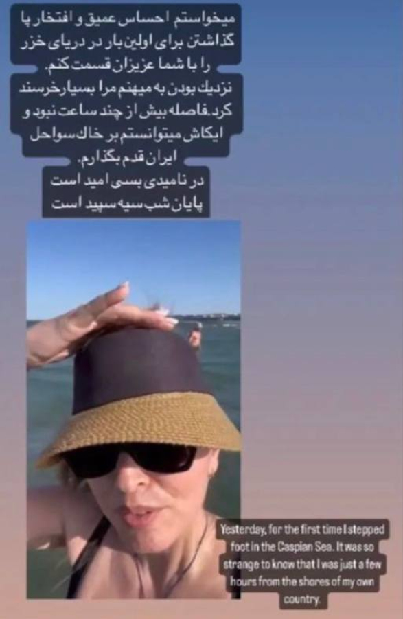 “Mən ilk dəfə Xəzər dənizinə qədəm qoymağın dərin hissini və şərəfini sizlərlə bölüşmək istərdim, əzizlərim. Vətənimə yaxın olmaq məni sevindirdi. Ölkəmin sahillərindən cəmi bir neçə saatlıq məsafədə olduğumu başa düşmək çox qəribə idi”,- deyə Pəhləvi yazıb.