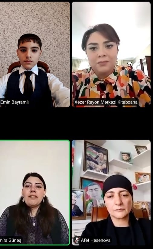 Xəzər Rayon Mərkəzi Kitabxana Sistemi tərəfindən keçirilən “Unutmadıq Şəhidim!” kitablarının onlayn təqdimatına və şəhid ailələri ilə görüşə Esmira xanım məni də dəvət etdi.Tədbirdə bir çox şəhid ailələri iştirak edirdi.