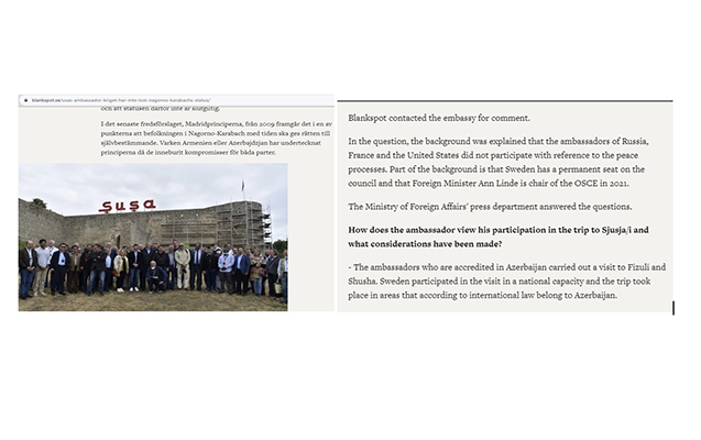Səfirliyin həyata keçirdiyi tədbirlərin nəticəsi olaraq ermənipərəst dairələrin bir çox planları iflasa uğradılıb. Belə ki, erməni lobbisinin himayəsi altında fəaliyyət göstərən, Vətən Müharibəsindən sonrakı dövrdə Azərbaycana qarşı 100-lərlə qarayaxma yazısına imza atan Rasmus Canbackin fəaliyyəti ifşa edilib. İsveçin diplomatik nümayəndələrinin Şuşaya səfərinə dair İsveç Xarici İşlər Nazirliyinə göndərdiyi iradlara cavab olaraq, İsveç Xarici İşlər Nazirliyi bildirib ki, Qarabağ Azərbaycanın beynəlxalq səviyyədə tanınmış ərazisidir. İsveç bu kontekstdə qəti mövqe sərgiləyən ilk Qərb ölkəsi olmuşdur ( https://blankspot.se/usas-ambassador-kriget-har-inte-lost-nagorno-karabachs-status/).