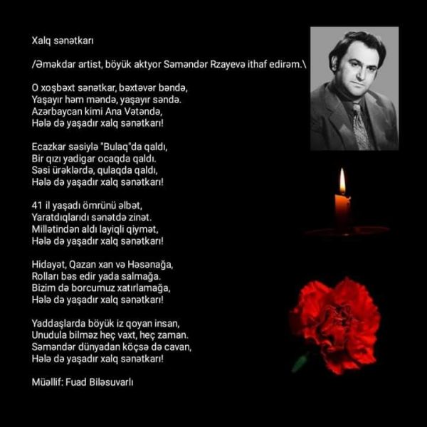 (Əməkdar artist, böyük aktyor Səməndər Rzayevə ithaf edirəm.)