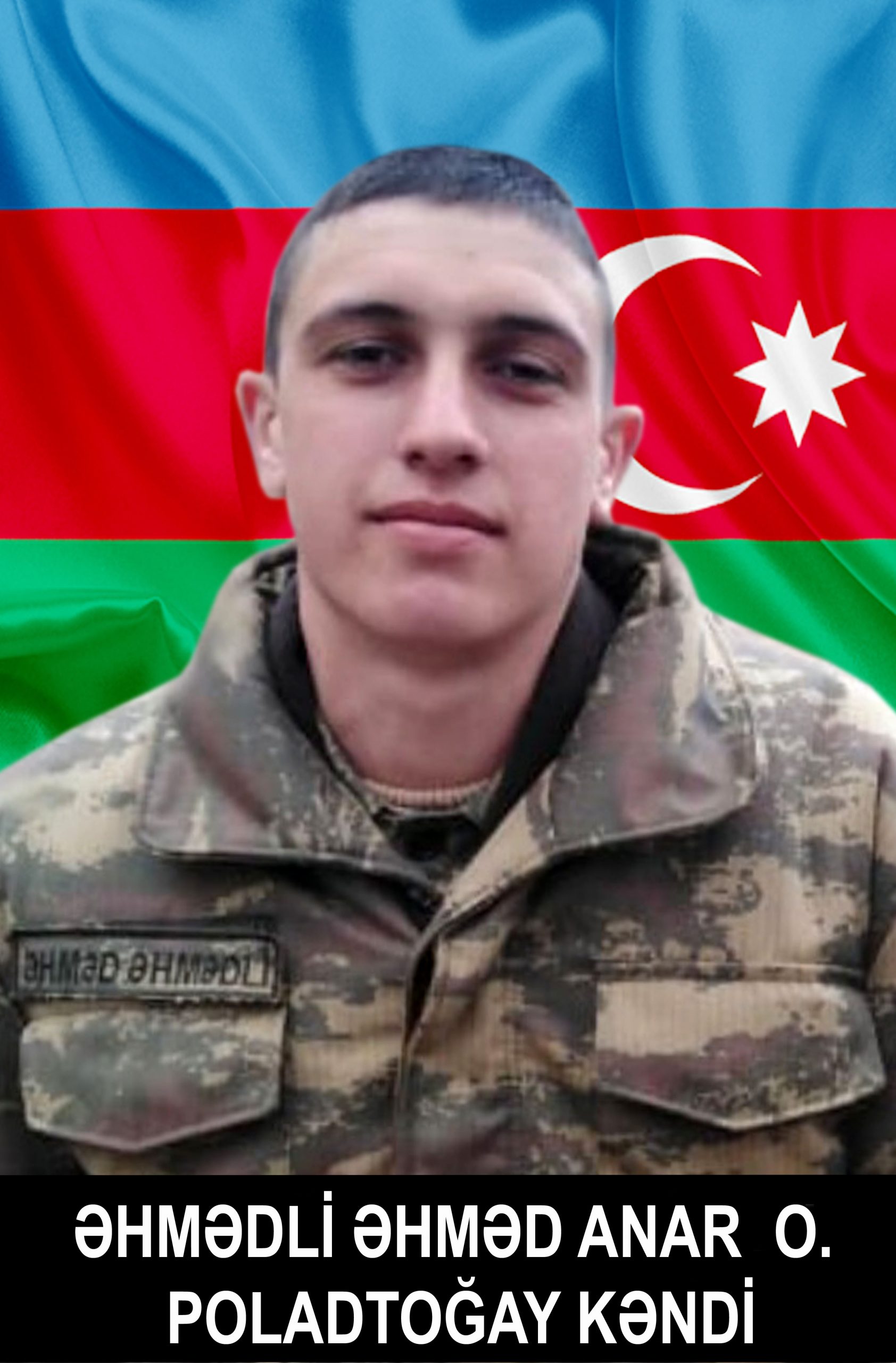 Əhmədli Əhməd Anar oğlu, 44 günlük müharibənin 19 yaşlı şəhidi… Həyət qapısı, bir mərətəbəli evin damı Azərbaycan Bayrağı, Əhmədin müxtəlif şəkilləri və çiçəklərlə bəzədilmişdir. İti baxışları ilə ətrafı seyr edir və gələnə “xoş gəldin”, gedənə isə “yaxşı yol” arzulayır. Əhməd 20 oktyabr 2001-ci ildə Poladtoğay kəndində dünyaya gəlib. Ailənin ilki idi, gəlişi ilə valideynlərinin adı üstə ad gətirmiş, onları ana, ata eləmişdi…