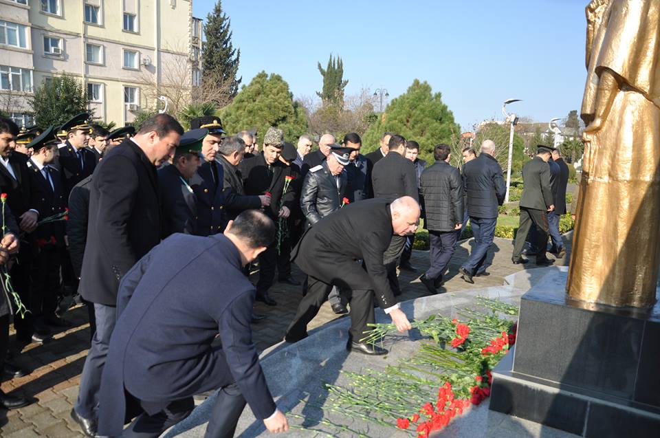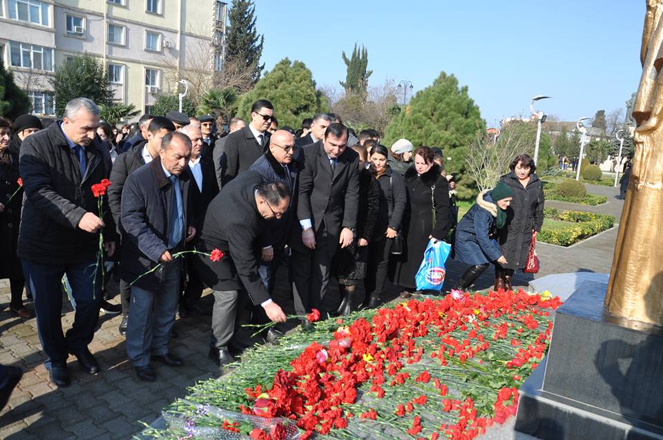 Səhər saatlarında LDU-nun rektoru vəzifəsini icra edən professor Natiq İbrahimov başda olmaqla universitetin professor-müəllim- tələbə heyəti şəhərin mərkəzində soyqırım qurbanlarının xatirəsinə ucaldılmış kompleksi ziyarət edərək şəhidlərin ruhuna ehtiram əlaməti olaraq abidənin önünə təzə-tər qərənfillər düzüblər.
